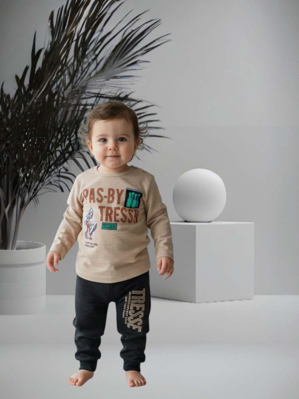Upgrade your child’s style with this light tea brown baby boy outfit. Featuring a light brown printed full-sleeve shirt and matching trouser, this dress is perfect for casual occasions and playtime. Made with soft fabric, it offers both comfort and a fashionable look for your little