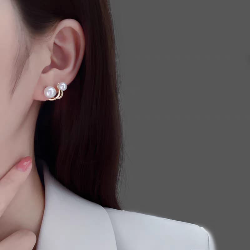 Stylish double-pearl earrings with a unique twist design. Lightweight, non-irritating, and perfect for both casual and formal looks.
