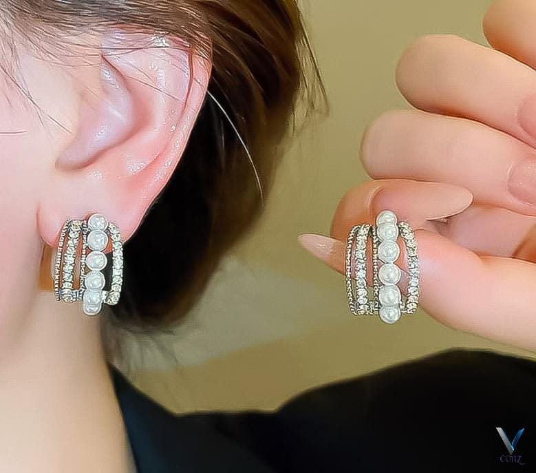 In stylish triple-band design crafted with shimmering crystals and glossy pearls, these huggie earrings bring the perfect blend of luxury and trend. Lightweight, elegant, and perfect for both casual and formal looks — a must-have statement piece for every jewelry lover.
