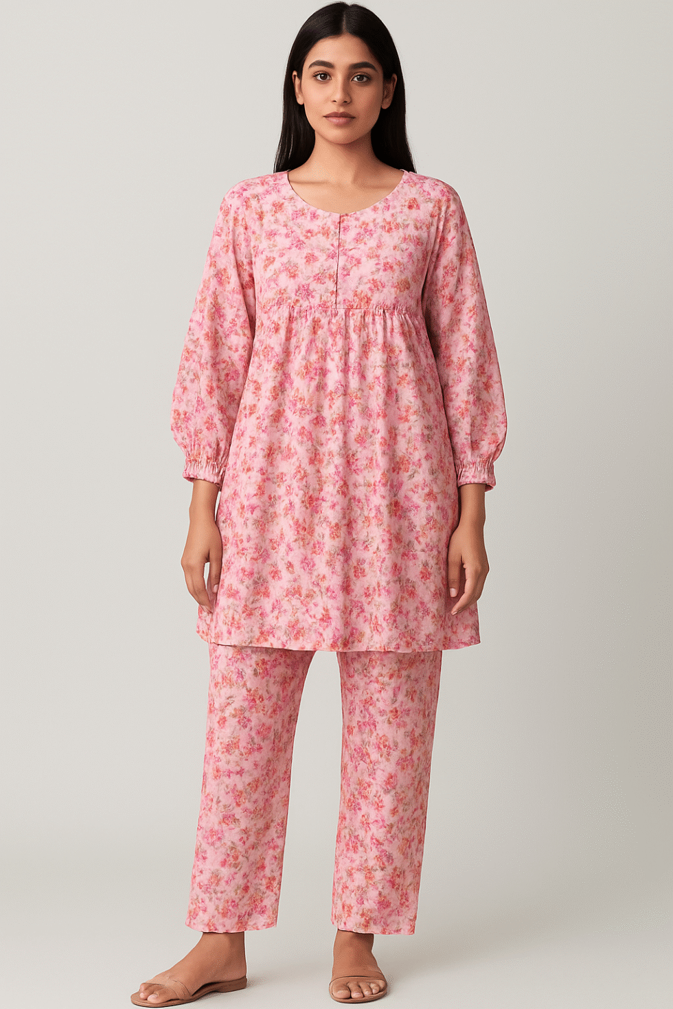 Stylish pink floral lawn two-piece suit with a comfortable kurta and straight trousers β€” perfect for casual and everyday wear.